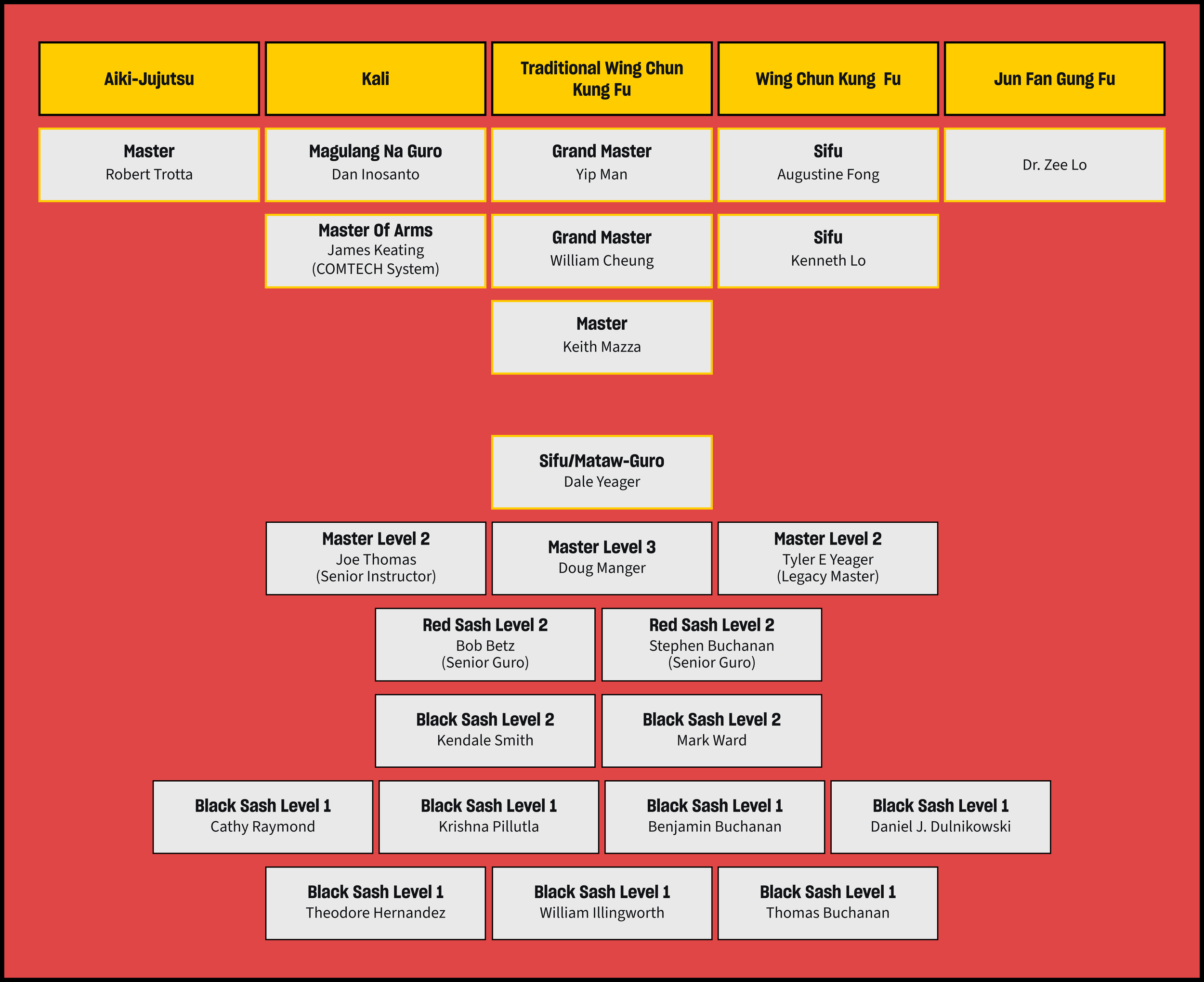 Sifu Yeager has also trained in Jun Fan Gung Fu under Dr. Zee Lo and Aiki-jujutsu under Master Robert Trotta.